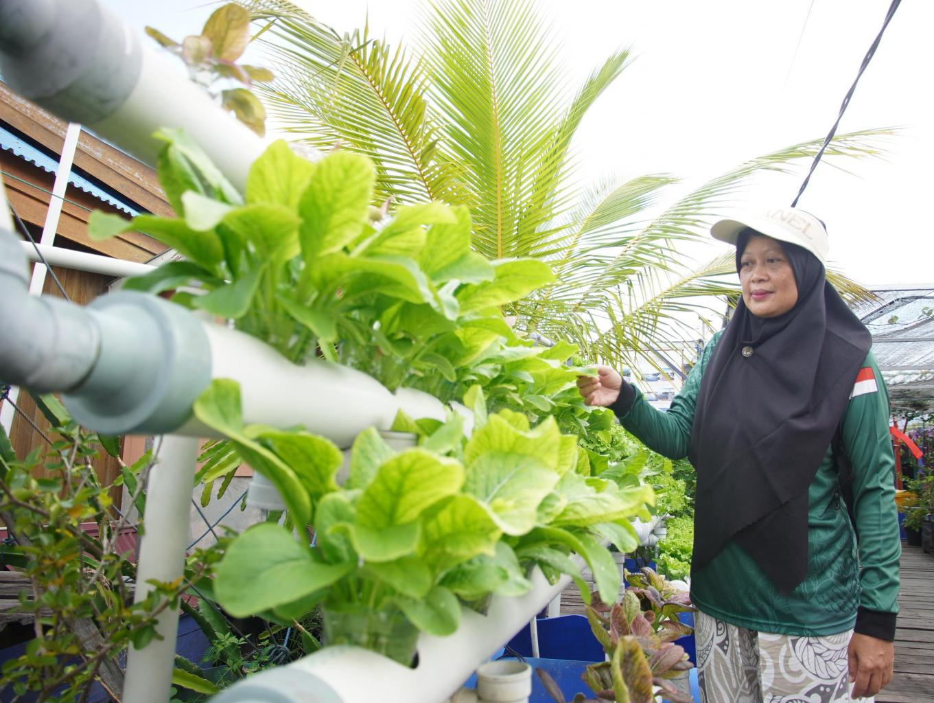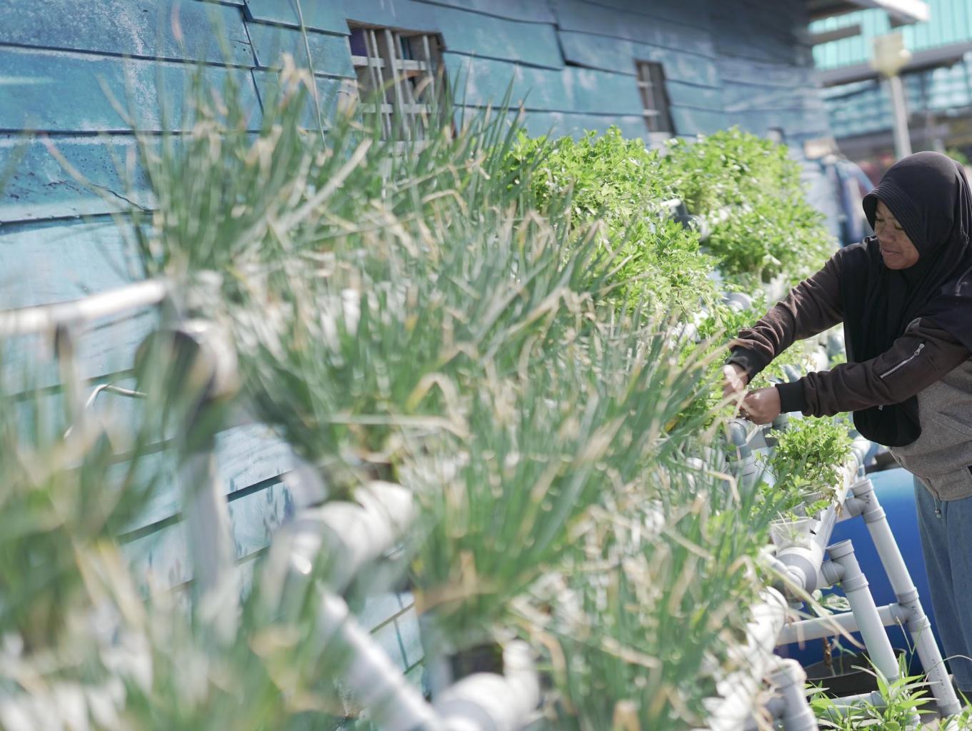 kampung yang bermukim diatas laut memiliki tanaman hidroponik yang subur dan hijau,yang bisa langsung di komsumsi