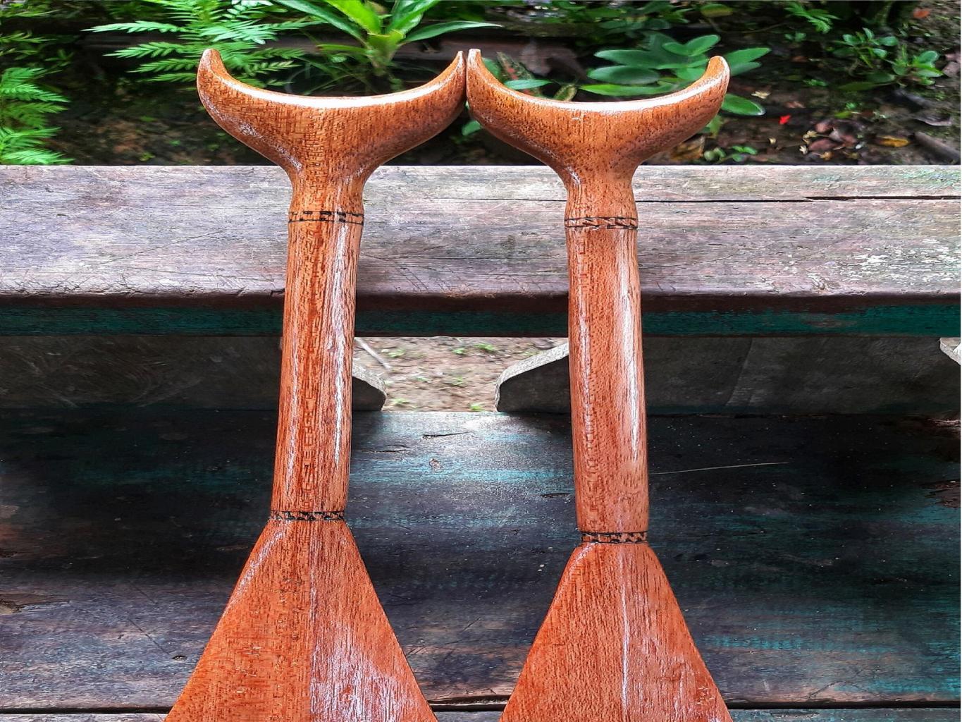 Paluga atau pendayung terbuat dari kayu kokoh yang memiliki bentuk yang berbeda dengan yang di pakai laki-laki. Paluga ini menjadi andalan masyarakat Mentawai sebelum mengenal alat transportasi Pompong.