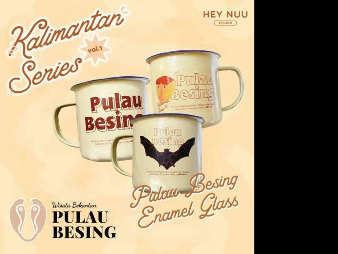 Gelas Enamel motif Bekantan, Kalong, dan Udang Galah