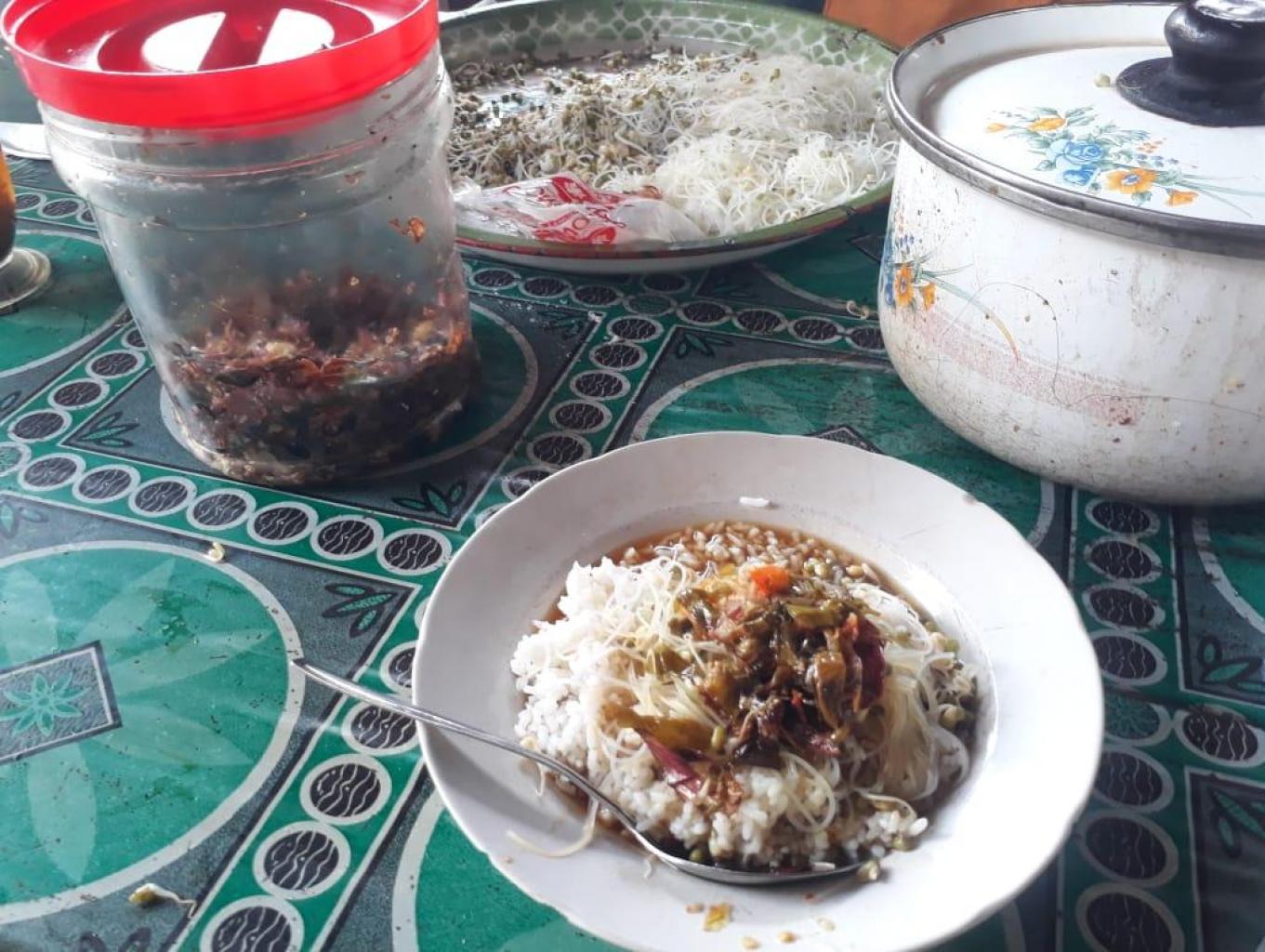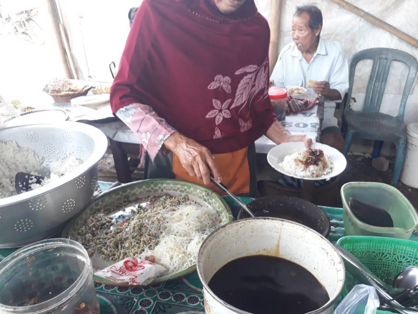 Soto tanpa daging dengan kuah gula merah dapat ditemukan di warung makan tradisional setiap hari senin kamis, soto ini cenderng rasanya manis dengan bahan bihun dan kobis